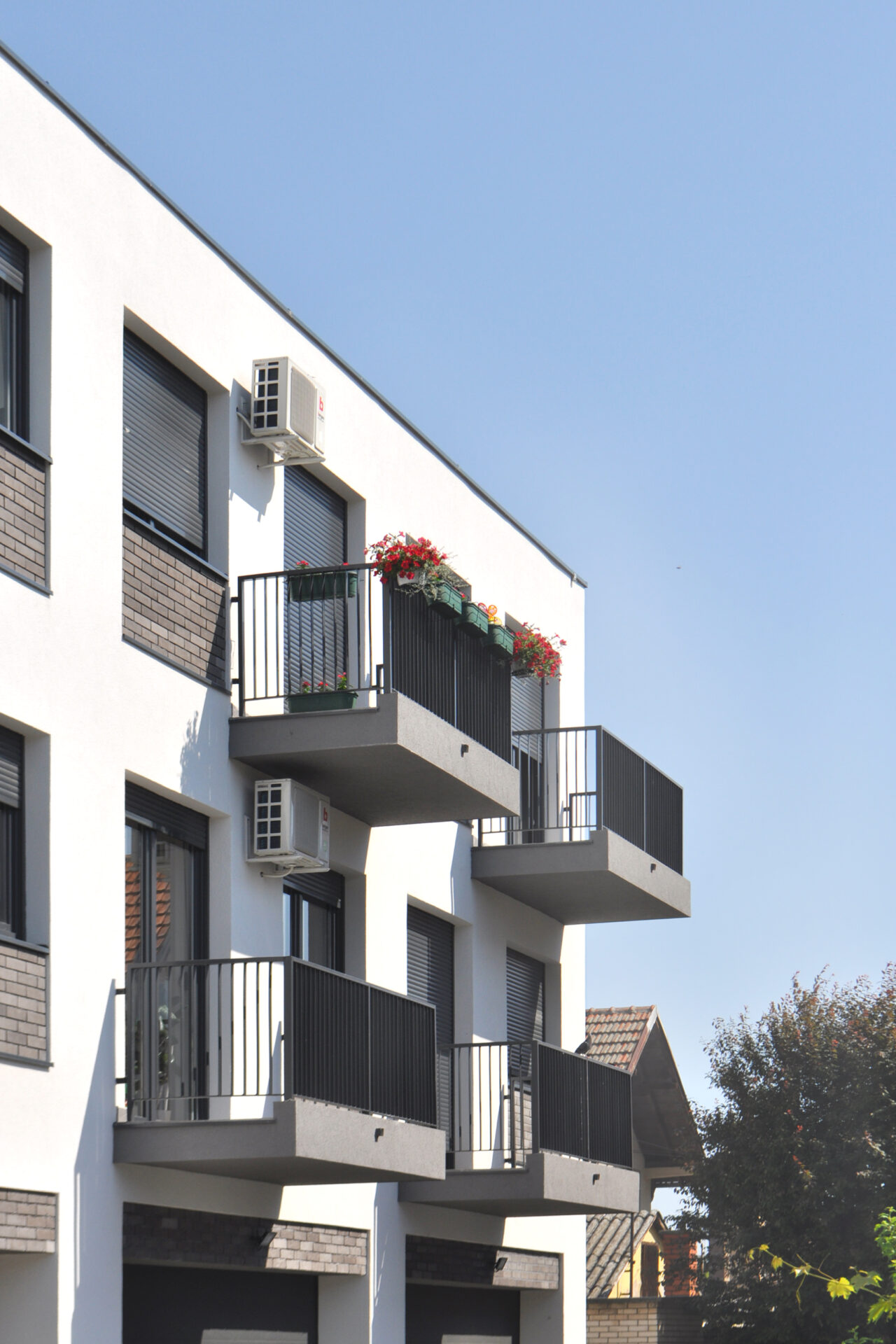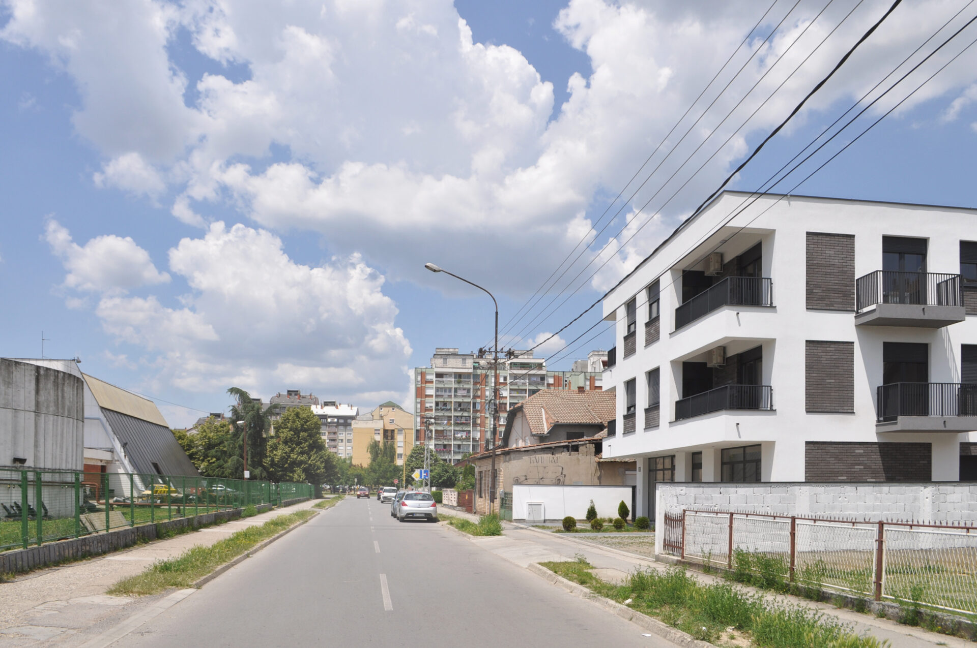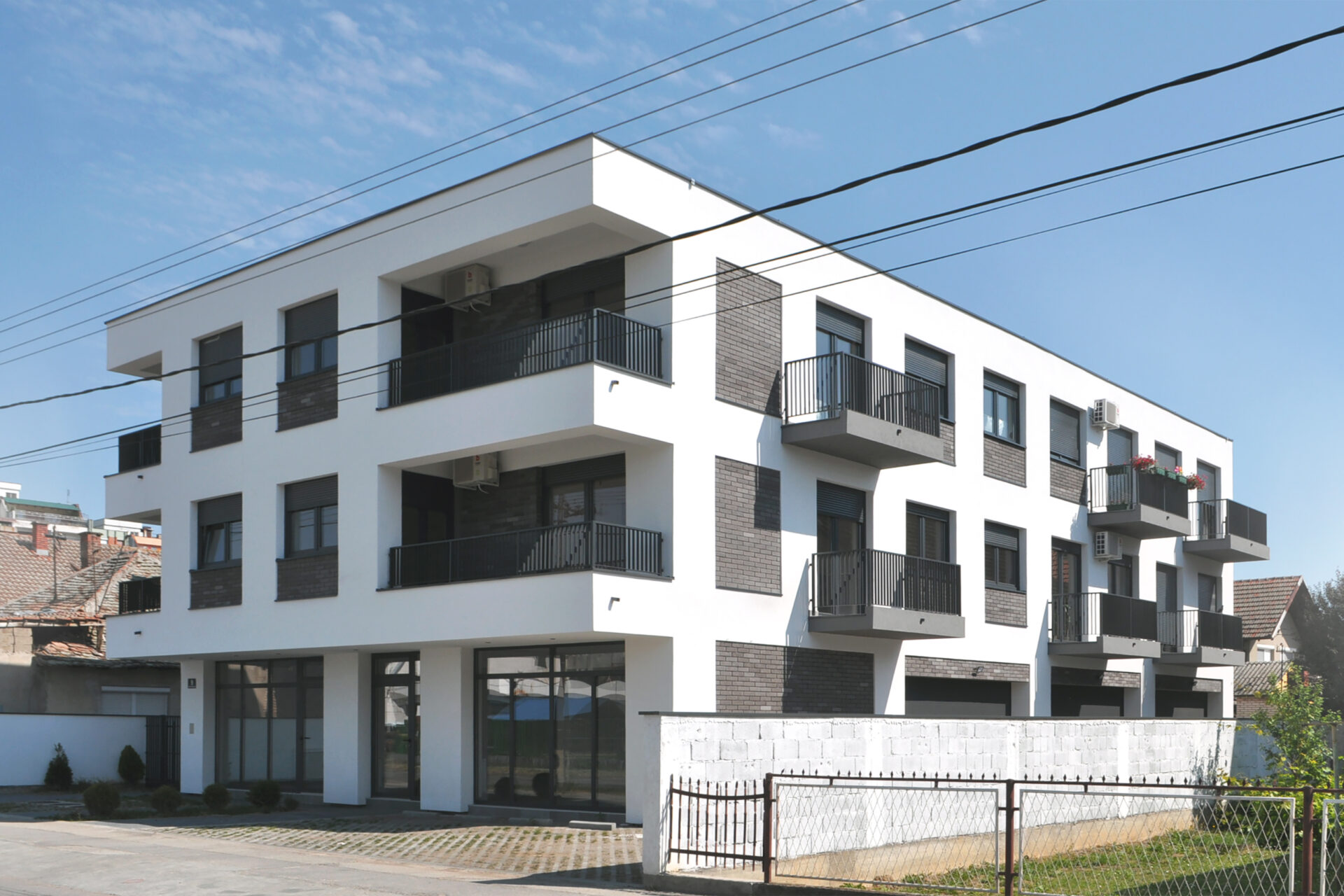 Stambeno-poslovni objekat je izgradjen prema savremenim trendovima, fasadni zidovi su gradjeni od termoizolacionih blokova d=25 cm sa fasadnom izolacijom od kamene vune d=10 cm, i finalnom materijalizacijom u kombinaciji silikonsko-silikatne fasade bele boje i listela od opeka. Unutrašnje zidove su gradjeni od termoizolacionih blokova d=25cm, opeka d=12 cm i blokovi d=10cm. Fasadnu stolariju čine prozori i vrata od savremenih višekomornih PVC/ALU profila sive boje i troslojnog termoizolacionog stakla punjenog argonom.
