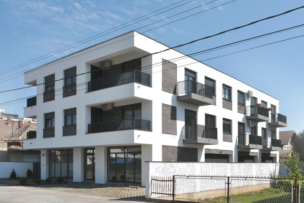 Poslovni objekat je izgradjen prema savremenim trendovima, fasadni zidovi su gradjeni od termoizolacionih blokova d=25 cm sa fasadnom izolacijom od stiropora d=10 cm, i finalnom materijalizacijom u kombinaciji silikonsko-silikatne fasade bele boje i granitne keramike.